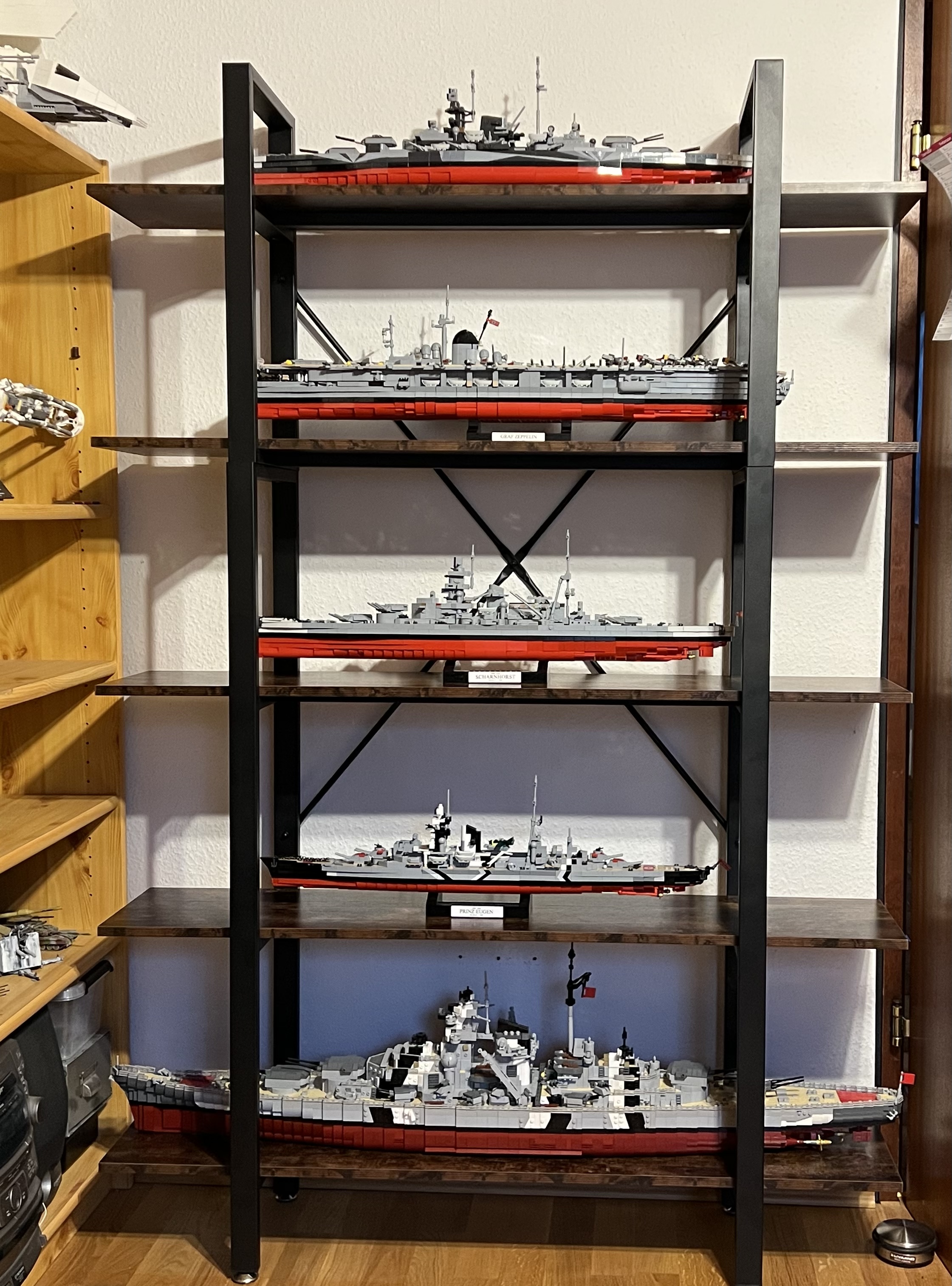 ist jetzt nur die grobe Belegung, hab jetzt links und rechts paar Panzer dazu was echt gut kommt. Wenns dann mehr Schiffe werden kommen zwei je Regalb…… bitte einloggen, um den Rest dieses Beitrages zu lesen