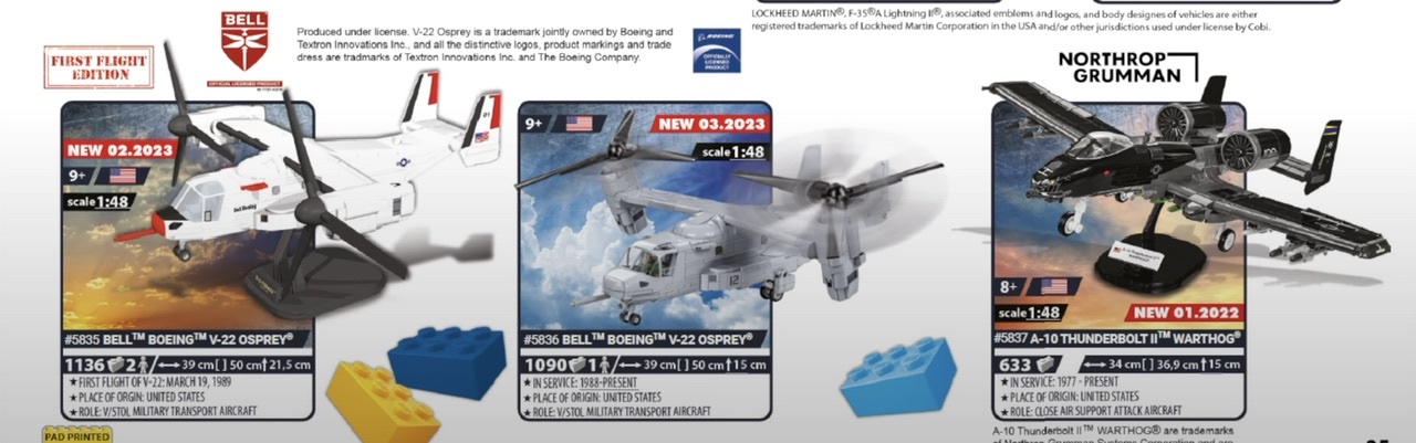 Nun versucht sich auch Cobi an der Osprey, in zwei Varianten. Dazu eine A-10 Thunderbolt II Warthog.